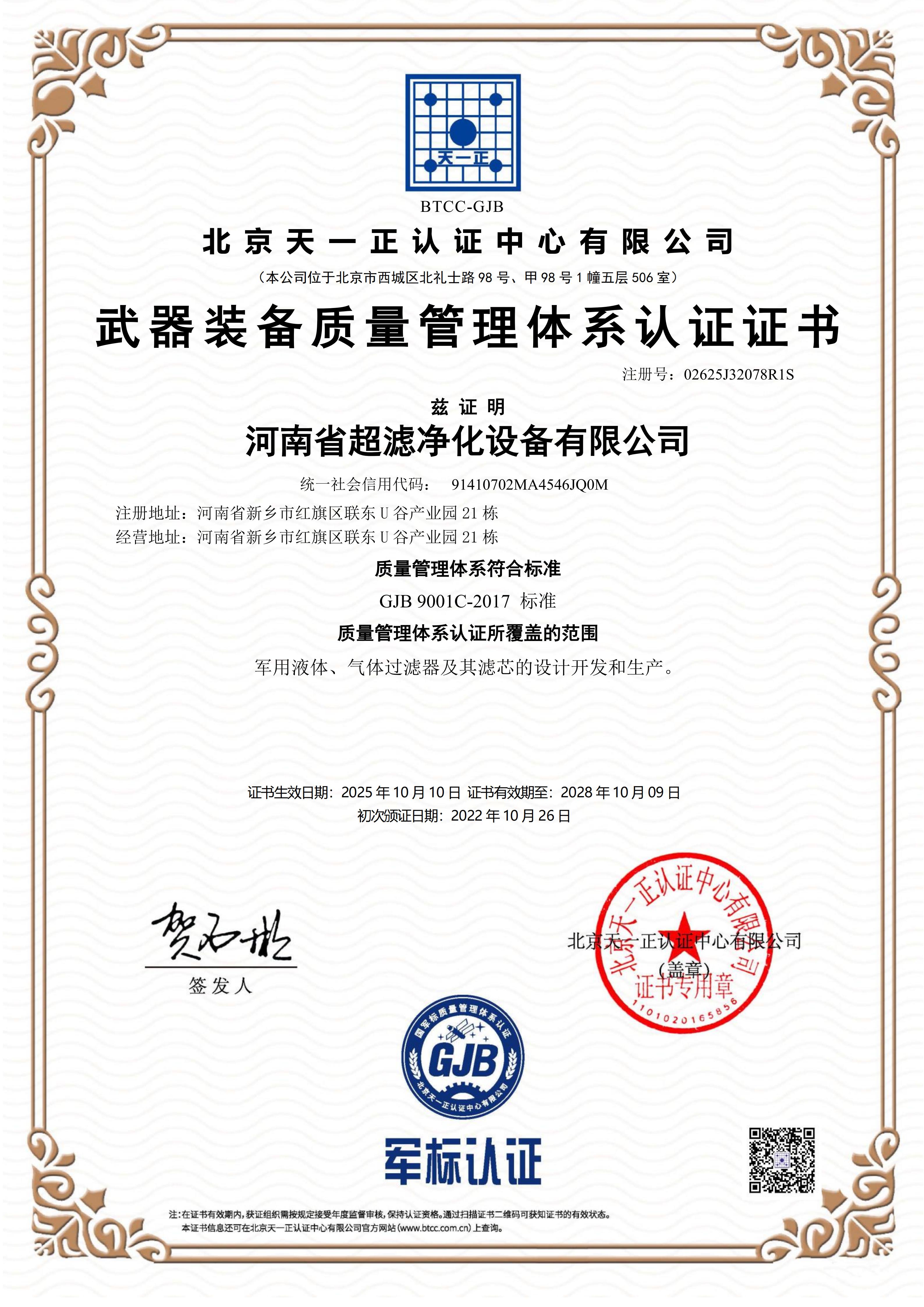 河南省超濾凈化設(shè)備有限公司成立于2018年,座落于河南省新鄉(xiāng)市,是一家集濾芯、過(guò)濾器、成套過(guò)濾裝置及液壓附件、液壓泵、特種閥等產(chǎn)品的研發(fā)、生產(chǎn)、銷(xiāo)售、技術(shù)服務(wù)為一體的綜合性企業(yè)。主要服務(wù)于國(guó)內(nèi)的航空、航天、船舶、核工業(yè)、煤碳、石油化工、電力、工程機(jī)械等行業(yè)。公司擁有2項(xiàng)發(fā)明專(zhuān) 利(ZL  2024 1 0110610.0 、ZL 20243 1 1806105.1)和6項(xiàng)實(shí)用新型專(zhuān) 利(ZL  202220053751.X、ZL202222784245.0、ZL202222578329.9、ZL202222630720.9、ZL202222864294.5、ZL202222712176.2),研發(fā)人員的不懈努力,銳意進(jìn)取,加上經(jīng)驗(yàn)豐富的技工與生產(chǎn)設(shè)備的結(jié)合,更好的產(chǎn)品技術(shù)使得質(zhì)量有了更可靠的保障,保證了產(chǎn)品的及時(shí)交付,增強(qiáng)了企業(yè)的核心競(jìng)爭(zhēng)能力。公司是過(guò)濾與分離行業(yè)協(xié)會(huì)會(huì)員單位,秉承“以質(zhì)量求生存,靠創(chuàng)新謀發(fā)展”的指導(dǎo)思想,始終把產(chǎn)品質(zhì)量放在前位,不斷進(jìn)取,持續(xù)改進(jìn),精益求精,按照ISO9001標(biāo)準(zhǔn)建立了一套完善的質(zhì)量保證管理體系,2022年通過(guò)了國(guó) 軍標(biāo)《GJB9001C-2017》質(zhì)量體系認(rèn)證,使公司的產(chǎn)品質(zhì)量得到提升,也將規(guī)范公司的管理,為客戶(hù)提供更多的、穩(wěn)定的高品質(zhì)產(chǎn)品。2023年,公司獲得了高新 技術(shù)企業(yè)榮譽(yù)稱(chēng)號(hào)。2024年,獲批成立新鄉(xiāng)市航天精密流體元件技術(shù)工程研究中心。