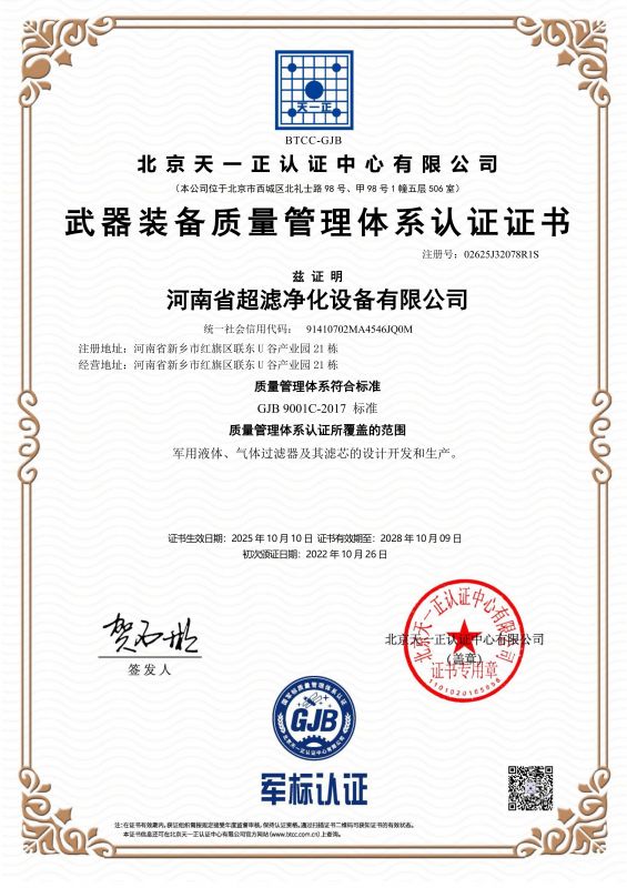 2025年9月18日,河南超濾順利通過(guò)了國(guó) 軍標(biāo)質(zhì)量管理體系(GJB 9001C-2017)的現(xiàn)場(chǎng)審核。此次審核由北京天一正認(rèn)證中心有限公司組織專(zhuān)家團(tuán)隊(duì)進(jìn)行,旨在全 面檢驗(yàn)公司質(zhì)量管理體系是否符合國(guó) 軍標(biāo)要求,是否具備持續(xù)為國(guó)防事業(yè)提供高質(zhì)量產(chǎn)品與服務(wù)的能力。我司對(duì)此次工作高度重視,高層領(lǐng)導(dǎo)帶領(lǐng)各部門(mén)負(fù)責(zé)人一同出席此次審核會(huì)議。審核期間,專(zhuān)家組通過(guò)聽(tīng)取匯報(bào)、查閱文件、現(xiàn)場(chǎng)觀(guān)察及訪(fǎng)談交流等方式,對(duì)公司領(lǐng)導(dǎo)層、各職能部門(mén)以及生產(chǎn)研發(fā)環(huán)節(jié)進(jìn)行了多 維度、深層次的評(píng)估。經(jīng)過(guò)嚴(yán)格審查,專(zhuān)家組一致認(rèn)為:河南省超濾凈化設(shè)備有限公司質(zhì)量管理體系架構(gòu)完整、運(yùn)行有效,各項(xiàng)流程規(guī)范清晰,質(zhì)量目標(biāo)明確且落實(shí)到位,完全符合國(guó) 軍標(biāo)質(zhì)量管理體系的標(biāo)準(zhǔn)要求,展現(xiàn)了公司在軍工配套領(lǐng)域的專(zhuān) 業(yè)能力和管理成熟度。公司總經(jīng)理陳關(guān)興在審核末次會(huì)議上表示:“通過(guò)此次國(guó) 軍標(biāo)審核,我們更加堅(jiān)定了以質(zhì)量促發(fā)展、以誠(chéng)信樹(shù)品牌的戰(zhàn)略方向。下一步,公司將繼續(xù)深化質(zhì)量管理體系建設(shè),推動(dòng)技術(shù)研發(fā)與過(guò)程管控雙輪驅(qū)動(dòng),為我國(guó)航空航天事業(yè)高質(zhì)量發(fā)展貢獻(xiàn)更多力量?!蔽磥?lái),我司將以此次審核通過(guò)為新的起點(diǎn),不斷提升自身核心競(jìng)爭(zhēng)力,積極響應(yīng)國(guó)家號(hào)召,以更優(yōu) 質(zhì)的產(chǎn)品和服務(wù)助力強(qiáng)國(guó)強(qiáng)軍事業(yè)。